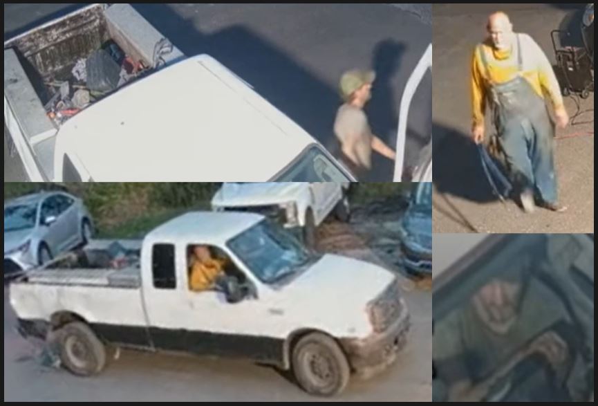 This case is solved...in a rather unusual way. Both men were in the white & black truck when it ran a stop sign and crashed into a deputy's patrol car. The driver of the truck, Christopher Shaffer (thin guy in the photos with the ball cap) was driving impaired, and was subsequently arrested for that. The other man was identified as Troy Lundgren (the man in the photos who is dressed like a Minion with yeller shirt and blue overalls), and deputies are currently looking for him. If you happen to know where he can be found, let us know.
